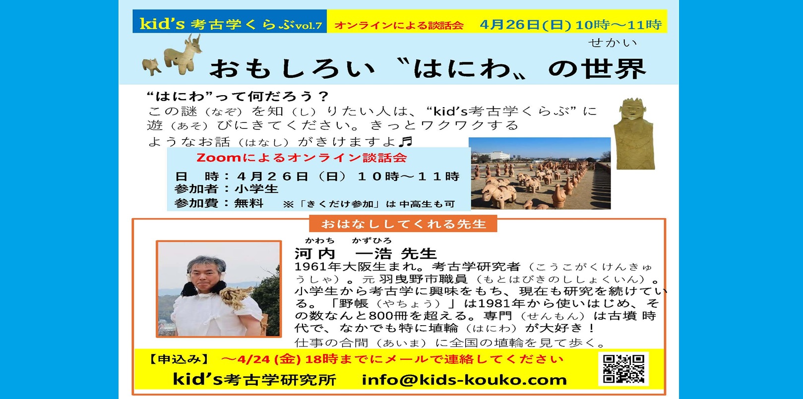 4/26 (日)10時、 kid’s考古学くらぶ vol.7「おもしろい”はにわ”の話」